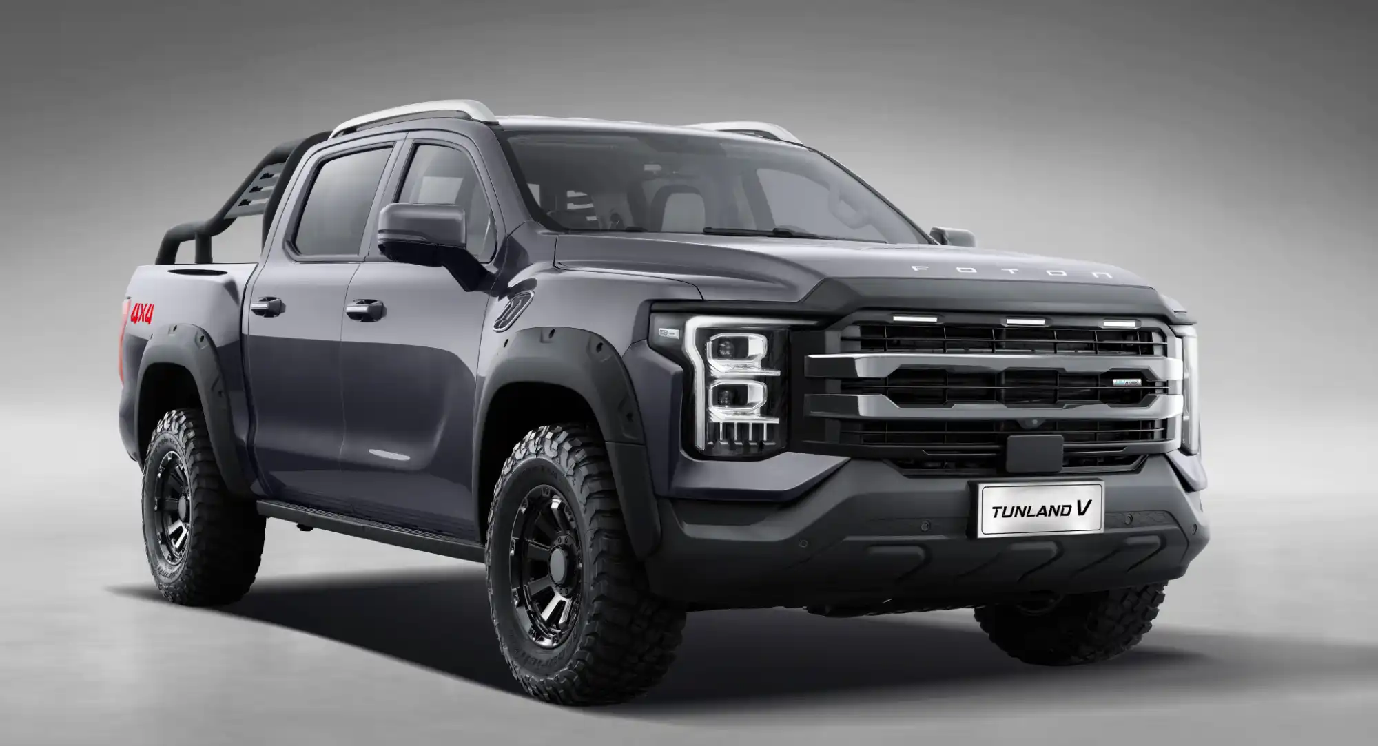 Tunland V7 kombinuje snagu i sofisticiranost, donoseći robustan dizajn prilagođen svim terenima. Njegova masivna prednja maska sa hromiranim detaljima i agresivnim LED farovima odaje utisak moći i sigurnosti. Aerodinamične linije i podignuta šasija omogućavaju optimalne performanse kako na asfaltu, tako i na zahtevnim off-road putevima. Veliki aluminijumski točkovi, široki lukovi blatobrana i ojačani pragovi dodatno naglašavaju njegovu izdržljivost, dok praktični dodaci poput električno podesivih retrovizora, krovnih nosača i stepenica olakšavaju ulazak i izlazak iz kabine. Sa paletom boja koja uključuje klasične i avanturističke tonove, Tunland V7 se lako prilagođava svakom stilu i potrebi vozača.