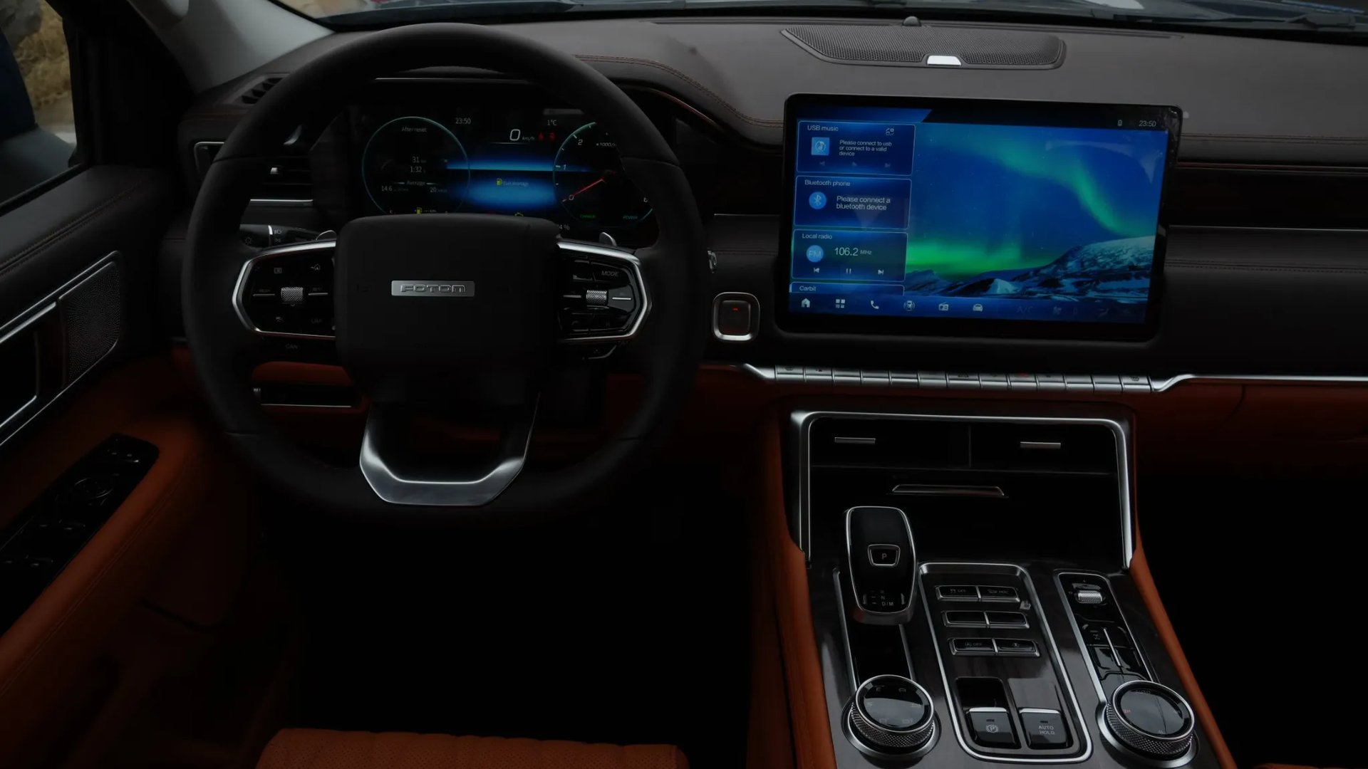 Unutrašnjost Tunland V9 pruža spoj komfora, tehnologije i ekološke svesti. Kabina je opremljena luksuznim materijalima, sa sedištima prilagođenim dugim putovanjima. Centralna konzola nudi intuitivan ekran osetljiv na dodir za upravljanje infotainment sistemom, navigacijom i postavkama hibridnog pogona. Digitalni kokpit pruža pregled potrošnje goriva i električne energije, dok dodatni prostori za odlaganje čine enterijer praktičnim i funkcionalnim